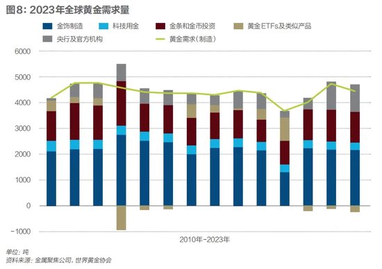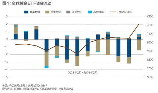 据渣打银行分析师测算,2023年,各国央行的黄金购买量是美国黄金ETF投资者抛售量的4倍多,这或在一定程度上抵消了黄金ETF市场的流出。