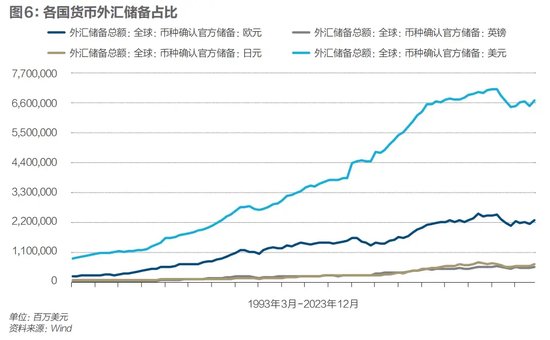 美元在全球外储中比例则降至20余年来最低。世界黄金协会2023年对全球央行黄金储备调研结果显示,超七成的受访央行预计未来12个月全球黄金储备将增加,上一年的这一比例仅有61%。关于未来储备分配,大多数央行认为美元资产将减少。