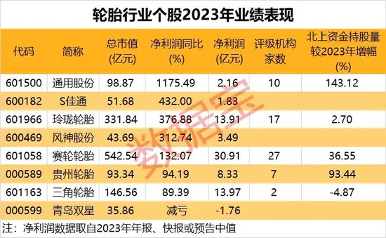 外资也较为看好这一赛道。截至4月25日,北上资金对通用股份持股量较2023年底增长143.12%;贵州轮胎和赛轮轮胎的持股量也分别增长了93.44%、36.55%。