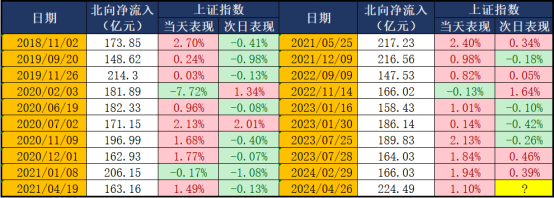 此外,我们的小伙伴“道达号”,也统计了北向资金历史前20大净买入当天和次日的市场表现。