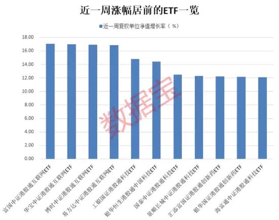 涨幅居前的ETF中多为港股相关ETF。富国中证港股通互联网ETF上涨17.05%,涨幅居首;华宝中证港股通互联网ETF上涨16.99%,博时中证港股通互联网ETF上涨16.9%,涨幅居前4位的ETF跟踪指数均为港股通互联网。