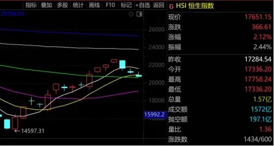近期港股市场牛气冲天,恒生指数短短5个交易日飙升1427点,涨幅高达8.8%,高居全球主要股指涨幅榜首位。从技术形态来看,相比今年初低点,恒生指数周五盘中高点涨幅已超过20%,宣告进入技术性牛市。此外,恒生指数已经直逼年线关口,一旦有效站上该点位,意味着牛市有望正式开启。