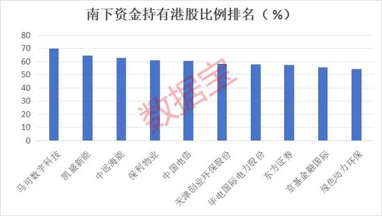 部分个股已经被南下资金买爆。数据显示,12只个股南下资金持股比例超50%,马可数字科技、凯盛新能、中远海能、保利物业、中国电信等个股持股比例均超60%。从最新持股市值角度看,股王腾讯控股成最爱,最新持股市值超过3000亿港元,中国海洋石油、中国移动、汇丰控股、建设银行、美团-W等个股最新持股市值均超千亿港元。