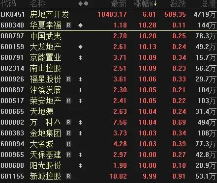 今日涨停的房地产股有近20家,包括华夏幸福、中国武夷、大龙地产等,此外,保利发展、招商蛇口、陆家嘴分别大涨7.41%、6.77%、5.59%。