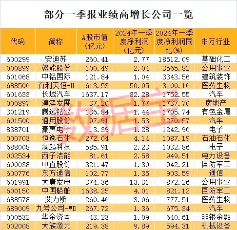 据证券时报·数据宝统计,截至目前,已披露一季报的公司中,今年第一季度净利润超亿元,且同比增速超50%的公司有157家。
