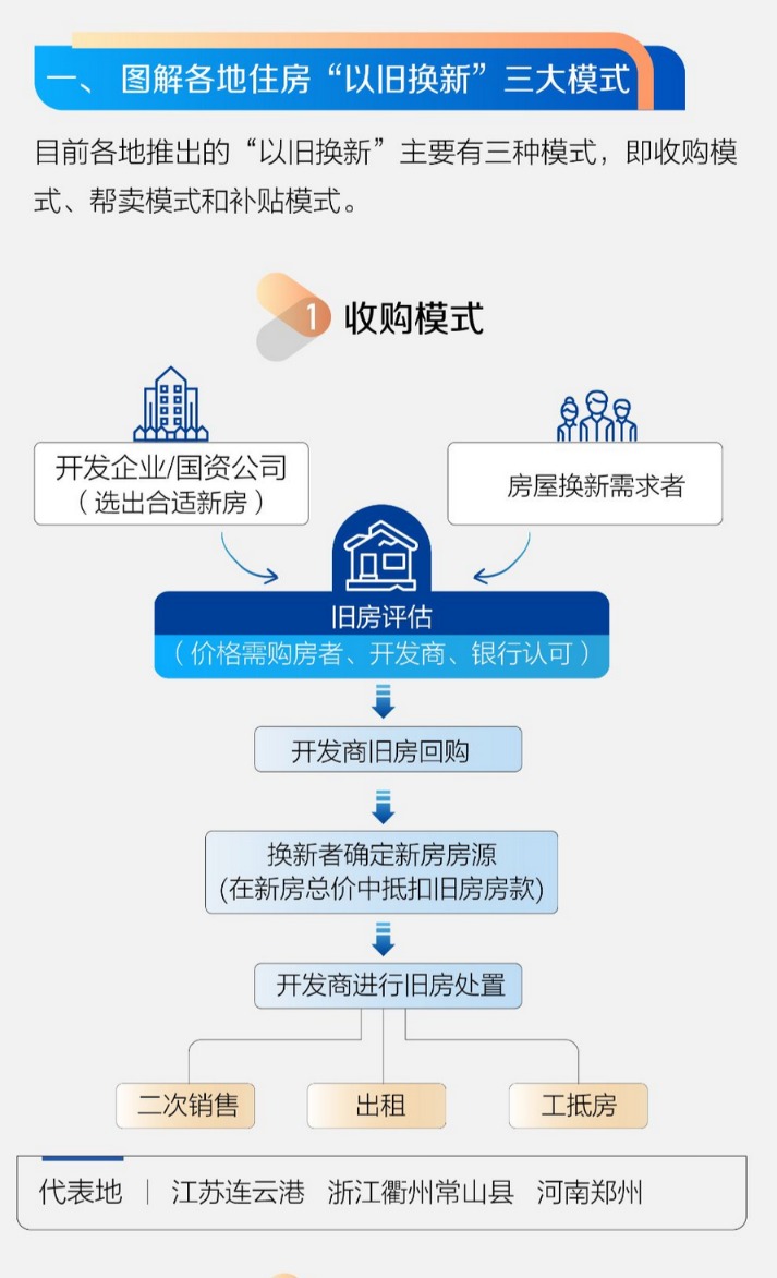 据21数据新闻实验室截至4月26日统计,全国已有超40城房子可“以旧换新”。怎么换?三大运作模式详见下图↓