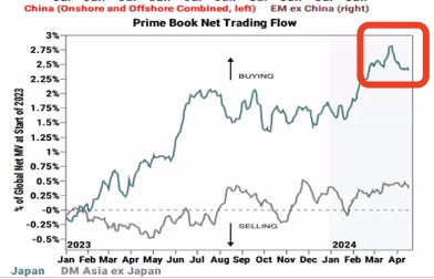 高盛的研究显示,对冲基金对于中国的净配置仍在5年的低位,但已经有所回升。从4月开始,对冲基金对日本股市的增配开始下降,部分资金可能转为配置到亚洲其他市场。