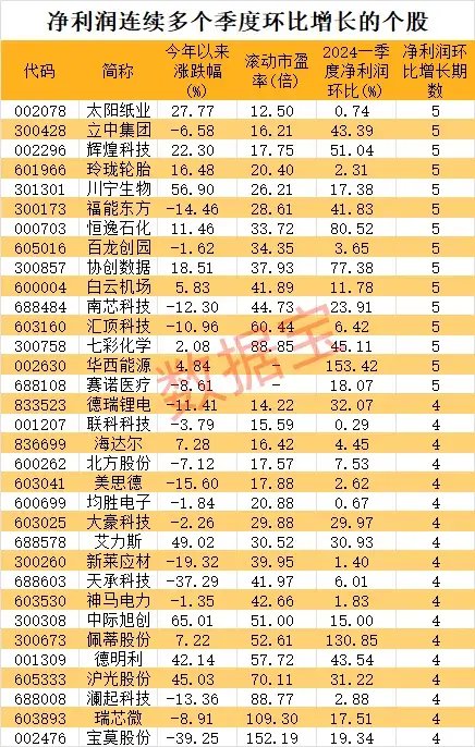 据数据宝统计,在众多一季度业绩增长的公司中,有33家公司连续四个季度净利润环比提升,电子、电力设备、基础化工、汽车等行业入围公司数量较多。