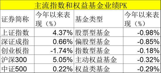 最低仓位分别为80%和60%的普通股票型基金和偏股混合型基金更能体现整体公募基金的权益投资能力。数据显示,前4月普通股票型基金、偏股混合型基金的收益率分别为-0.98%、-0.85%。