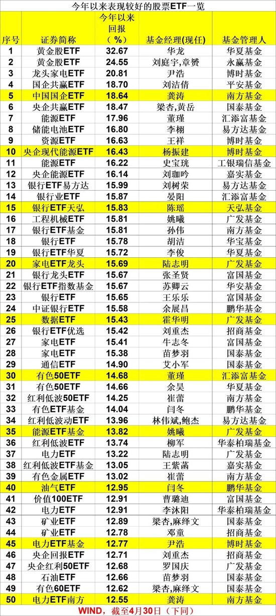 今年以来,黄金、红利、央国企等板块轮番演绎,因而带动一大批指数基金的表现。从具体指数基金表现来看,黄金、家电、央国企、能源、资源等主题指数基金成为前4月最大赢家。
