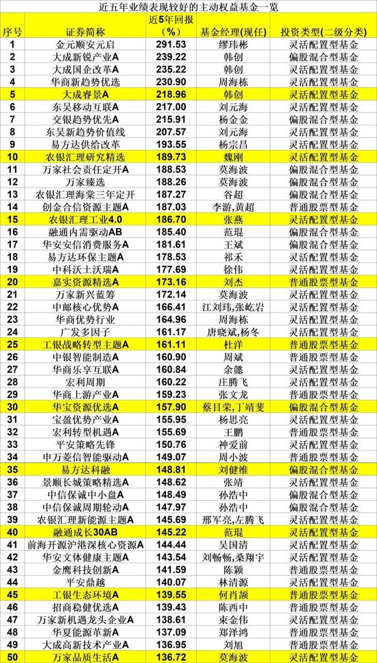 从最近五年投资来看,表现最佳的基金收益率超290%。