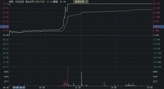 化工板块掀涨停潮,联合化学、金丹科技、宝丽迪、七彩化学(维权)、保利联合(维权)、星湖科技、百合花等十余股涨停。