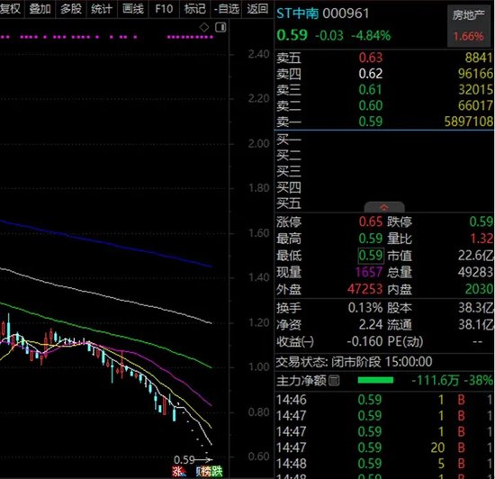 ST中南5月6日公告,截至5月6日,公司股票收盘价已连续18个交易日低于1元/股,预计将连续20个交易日低于1元/股。