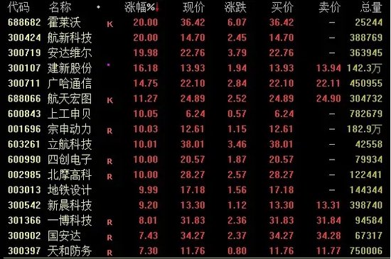 两市超3000股飘红,军工板块爆发,霍莱沃、航新科技、安达维尔、新研股份(维权)等多股涨停;化工股持续活跃,百川股份、兴业股份、高争民爆、艾艾精工等斩获3连板;地产板块热度不减,南国置业收获6连板,新城控股等涨停;医疗保健板块拉升,宝莱特、尚荣医疗涨停;合成生物概念延续强势,富士莱连续3日涨停,蔚蓝生物收获5连板;ST板块仍大幅下挫,*ST保力、*ST银江(维权)、*ST巴安(维权)等连续跌停。值得注意的是,受周鸿祎体验飞行汽车提振,三六零股价大涨,盘中一度触及涨停。