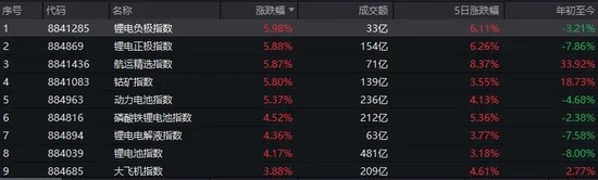概念指数涨幅居前板块多来自锂电池相关概念,天力锂能、合纵科技(维权)、湘潭电化、天际股份(维权)等10余股涨停。