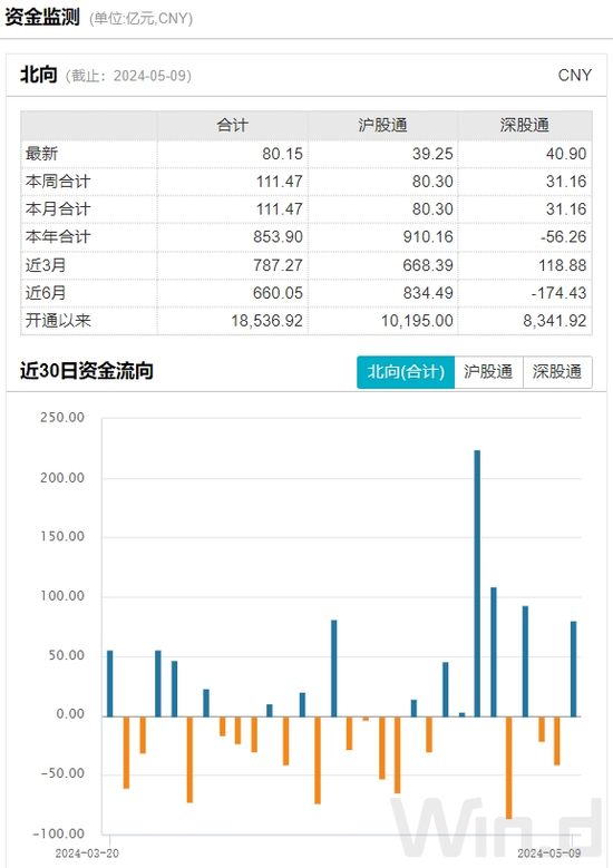 5月9日,北上资金大幅净买入80.15亿元。从近期外资动向来看,随着政策利好的持续叠加,外资亦真金白银做多A股,近期连续多日大额净买入。
