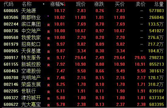 地产板块今日延续强势,截至收盘,天地源、南都物业、滨江集团、中交地产、我爱我家、招商蛇口等涨停,特发服务涨超9%,金地集团、保利发展涨超5%。值得注意的是,南都物业近4日已斩获3个涨停板。