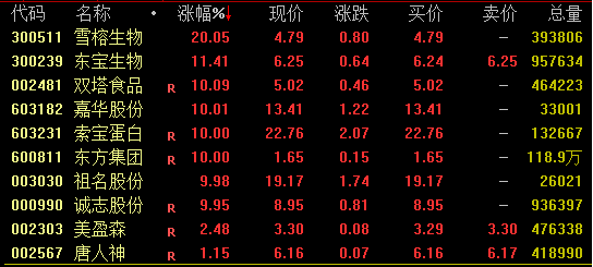 人造肉概念大幅走高,截至收盘,雪榕生物、双塔食品、嘉华股份、索宝蛋白、祖名股份等涨停,东宝生物涨超11%。