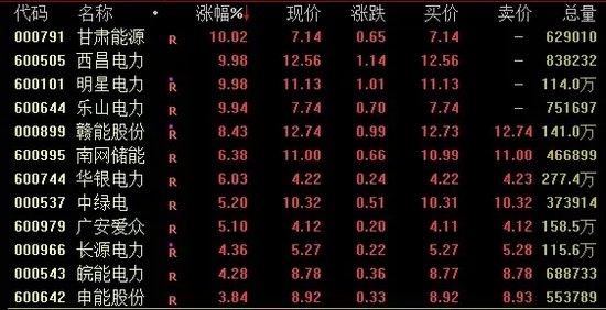 燃气、电力、水务等板块集体拉升,截至收盘,电力板块方面,甘肃能源、西昌电力、明星电力、乐山电力等涨停,赣能股份涨超8%;值得注意的是,明星电力、乐山电力已连续两个交易日涨停,西昌电力近6个交易日斩获4个涨停板。