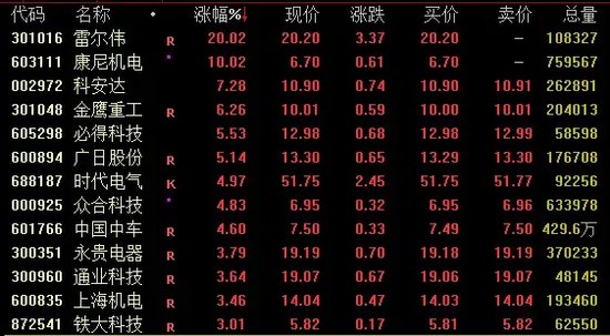 高铁概念今日强势拉升,截至收盘,雷尔伟、康尼机电(维权)、思维列控等涨停,科安达涨超7%,时代电气、中国中车涨近5%。