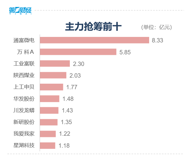 具体到个股来看,通富微电、工业富联、积成电子获净流入12.08亿元、4.51亿元、4.44亿元。净流出方面,药明康德、贵州茅台、东方财富遭抛售9.46亿元、3.96亿元、3.49亿元。