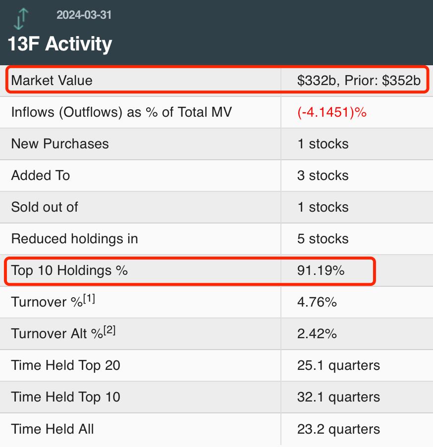一季度末持仓市值达3320亿美元
