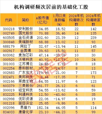 机构调研是了解上市公司最新产业布局的重要途径之一。据数据宝统计,今年以来接近300只基础化工股获得机构调研。安利股份、国光股份、金石资源、美瑞新材、阿拉丁等8股年内被机构调研10次及以上。