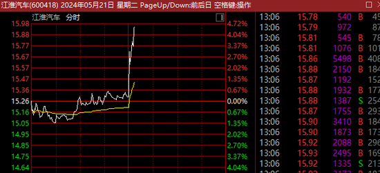 5月21日午后开盘,市值超300亿元的江淮汽车股价直线暴涨。