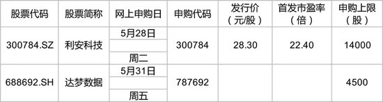 据目前安排,若无变化,下周(5月27日至31日)有2只新股可申购,包括科创板1只、创业板1只。