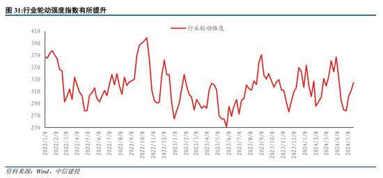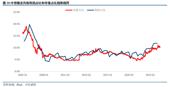 但从中期配置角度看,宜继续坚守红利底仓,同时关注具备独立基本面逻辑的行业,如电力、养殖、有色、工程机械等。回归到风格轮动的基本面本质,利润占比的趋势变化决定风格超额收益方向,目前中信行业稳定风格的利润占比上行趋势仍在延续,在经济需求及新的产业周期未出现的背景下,红利风格市值占比提升趋势仍未出现明显挑战。此外,电改有望加速、猪价拐点明确、降息预期以及出海逻辑分别支撑电力、养殖、有色、工程机械板块的独立行情逻辑亦在延续演绎。