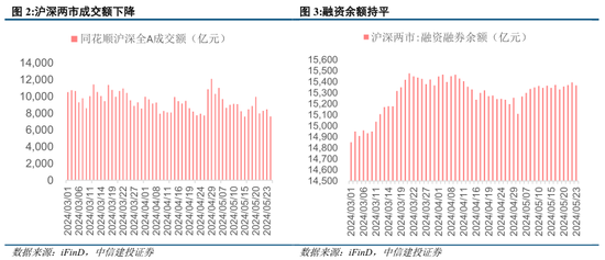 北向资金流入,成交额有所回升。本周北向资金净流入8.35亿元。本周成交额有所下降。两融余额变动幅度较小,与上周基本持平,截止至5月24日,两融余额为15368.29亿元。