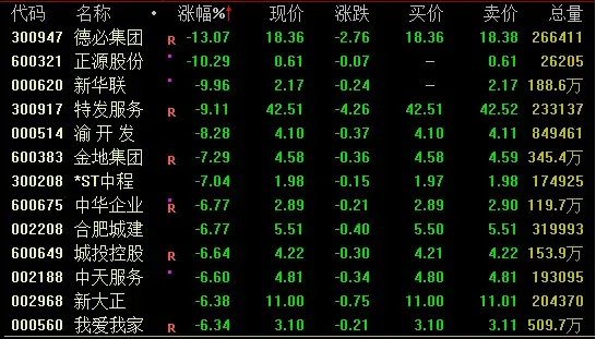 地产板块今日大幅回调,截至收盘,德必集团跌逾13%,正源股份、新华联(维权)跌停,特发服务跌超9%,金地集团跌超7%,万科A跌近4%。