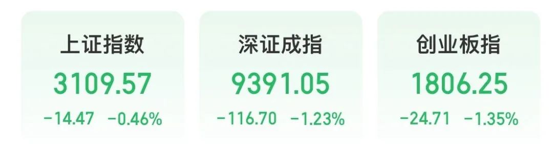 截至收盘,上证综指跌0.46%,深证成指跌1.23%,创业板指跌1.35%,两市成交额7417亿元。