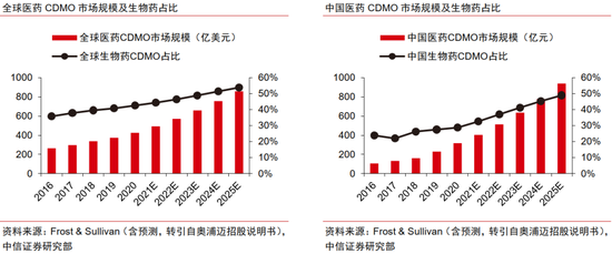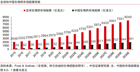 1)医疗健康:制药与治疗过程的提效+降本,生物药渗透率持续提升。目前生物制造在医疗健康中的应用主要有两种方式:一种是对微生物进行设计和改造,使微生物可以生产某种药物分子,或其本身作为活性药物,实现治疗疾病的功能;另外一种是基于合成生物学的工程化思维和设计理念,对哺乳动物细胞进行改造,使其具备相应的功能,如用于器官移植、细胞治疗和疫苗生产等。生物制药具备更好疗效和更低毒副作用,研发和生产的难点亦在被逐渐克服,Frost & Sullivan(转引自奥浦迈招股说明书)预计2020-2030年全球和中国生物药市场规模CAGR分别为10.5%和14.1%。展望未来,司美格鲁肽等多肽类药物或成生物制药爆品之一。