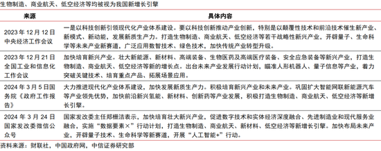 1)生物制造是我国发展新质生产力的重要一极。生物制造是我国发展新质生产力的重要一极。发展新质生产力是推动高质量发展的内在要求和重要着力点,生物制造、商业航天、低空经济均是我国加速新质生产力发展的战略性新兴产业。生物制造是一种利用生物组织或生物体等进行物质加工,从而生产各种人类所需产品的先进物质转化工业模式,当前已经发展出生物+医药、生物+化工、生物+能源、生物+轻工等全新生产方式,未来还有望向采矿、冶金、电子信息、环保等领域拓展,具有引领“第四次工业革命”的潜力,我们预计市场规模有望达到万亿级别。