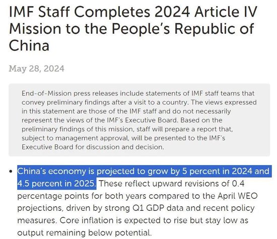 IMF(国际货币基金组织)在本周三将中国今年的经济增长预测,2024年GDP增幅从之前的4.6%上调至5%。