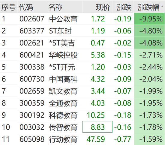 上午教育板块整体走低,ST东时(维权)、华嵘控股、中国高科等跟跌。
