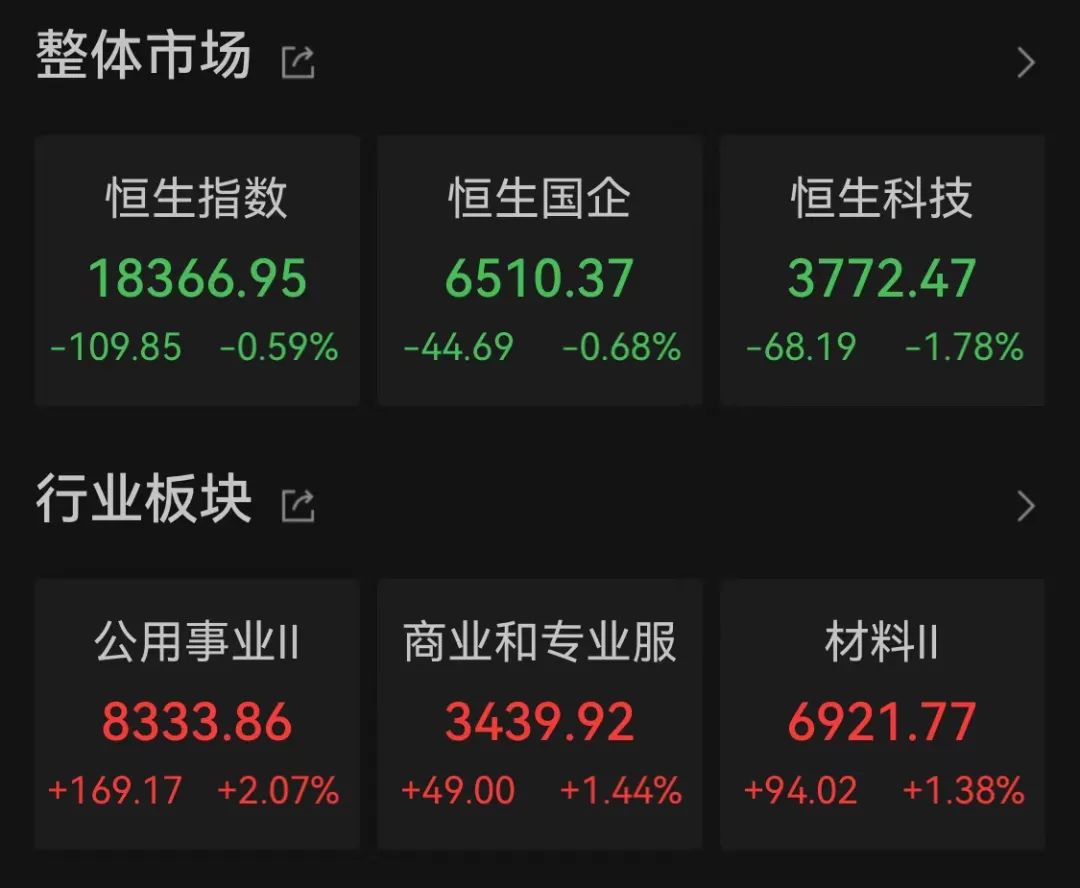 板块概念方面,科技、消费股跌幅居前。汽车股分化,蔚来-SW绩后跌超7%,长城汽车跌4%,华晨中国涨近5%。公用事业、有色、内银板块走强。新股方面,宜搜科技首日上市狂飙91.72% 吸引关注。