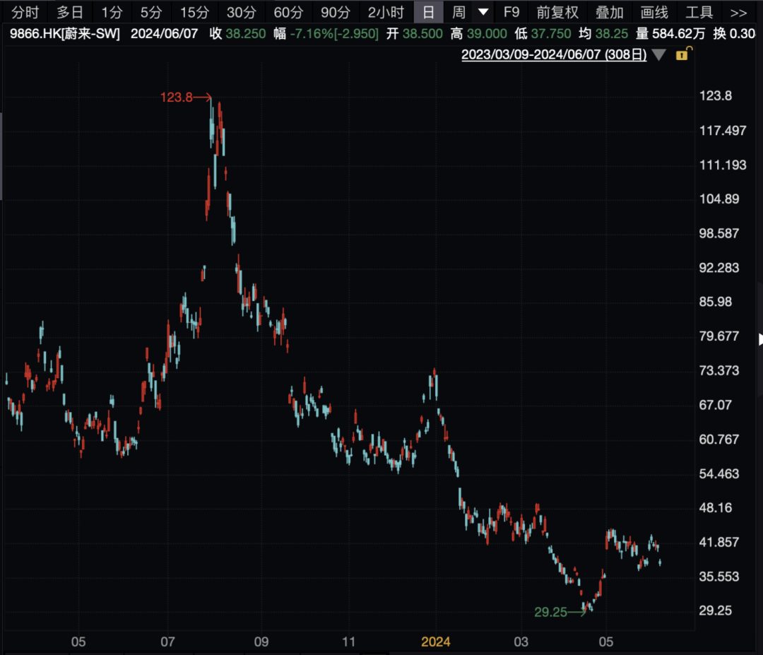 财务表现方面,蔚来一季度总营收为人民币99.086 亿元,同比减少7.2%;净亏损为人民币51.846亿元,同比增加9.4%。一季度财报发布后,6月6日蔚来汽车美股股价报4.910美元,下跌6.83%。6月7日,蔚来港股(蔚来-SW) 收跌7.16%。