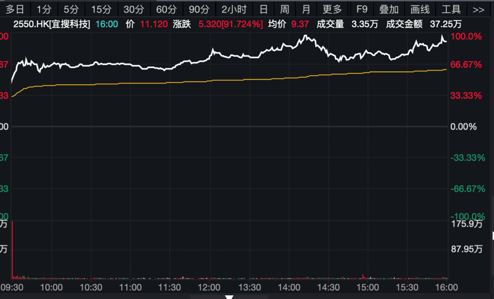 6月7日,宜搜科技控股有限公司(以下简称宜搜科技)在港交所上市。截至收盘,宜搜科技报11.12港元,上市首日涨幅达91.72%。据了解,宜搜科技成立于2005年。公司以搜索引擎平台起家,后转型到数字阅读业务。宜搜科技表示将利用其在人工智能推广领域积累的经验,将业务拓展至AIGC。