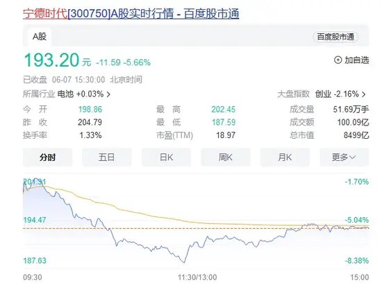 宁德时代等巨头跳水