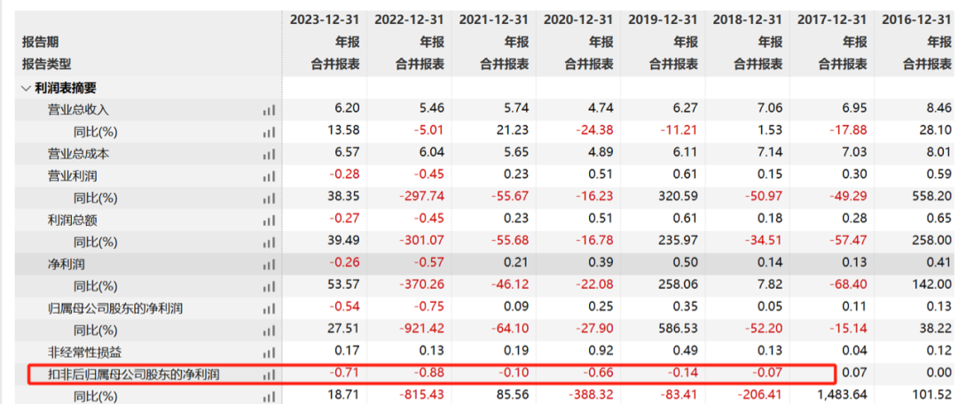 该股曾是去年人工智能浪潮中最大的黑马之一,自2020年中期算起,该股最多时狂飙超过900%。随后一路下行,截至上周五收盘,该股较最高点杀跌近70%。而且,在此之前,该公司已经连续两年亏损,今年一季度亦出现大幅亏损,而其扣非净利润更是连续亏损六年。