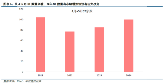 小微盘的下跌是因为监管压力导致的吗?我们认为,对于近期小盘股风格的下跌,退市新规有一定的影响但并不大。政策压力是小盘走弱的诱因而非主因。新增实施ST家数是我们观察政策影响的较好指标。根据历史经验历年4月底和5月初是ST新增实施的高峰期。我们统计发现今年4-5月新增实施ST共有100家,相比去年有所增加,但并未出现爆发式增长。考虑到2023年A股企业盈利情况,这一数量是可预期的正常数据。(详见策略专题《市场应该担忧吗?——“退市新规”的短期冲击和长期影响》)