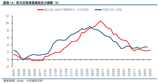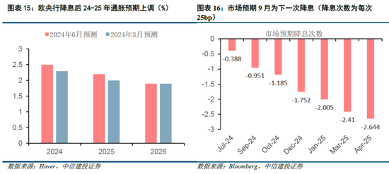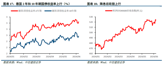 此前在加拿大央行,欧洲央行的降息预期下,市场对于海外流动性转松有所期待,但欧洲央行降息后欧央行表态不对任何特定利率路径做预先承诺,7月降息概率偏低。2024年GDP和通胀预测上调,预计2024年通胀为2.5%,3月为2.3%;2025 年为2.2%,3月为2.0%,提高了远期通胀预期,因此欧央行降息后投资者反而对进一步的连续降息期待落空。资产表现上,德国国债利率有所上行,欧洲股市普遍上涨。