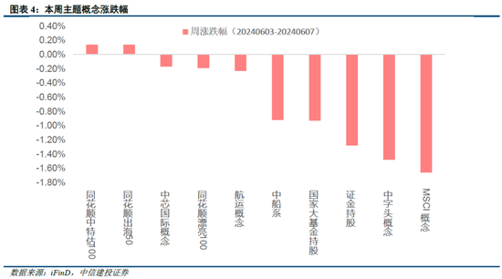 主题概念方面,同花顺中特估100、出海50相关概念板块涨幅居前。本周,A股震荡回调,市场热点快速切换,新兴概念股则快速回调。“中特估”、“出海”概念逆市活跃,市场延续调整,继地产,电力相继走弱后,近期科技板块热点较多,但延续性较差,赚钱效应仍在恶化,尤其是小微盘在年报问询潮下连续受挫,市场情绪在交易所年报问询函的不断加力下越来越谨慎。