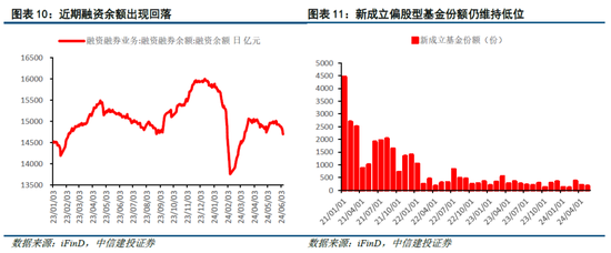 近期市场微观流动性尚未出现显著改善。目前A股增量资金仍然处于存量博弈环境下。融资余额出现震荡回落,前期回升趋势停滞。新成立偏股型基金仍维持低位,5月新成立偏股型基金159.55亿份。近期市场重要股东净增持市值有所回升,本周净增持237.25亿元,期待后续市场净增持市值持续趋势回升。