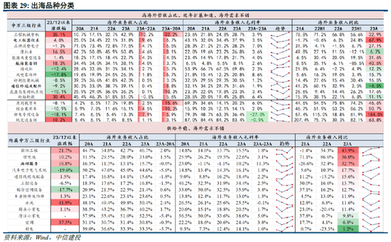 出海:供给端主动拓展提速、且外需仍强。随着美国近期经济数据开始呈现转弱趋势,欧洲需求持续偏弱,一个潜在的担忧是,后续外需有转弱的压力,高利率下补库动能也较弱。从一些高频数据看,例如工程机械外销同比、家电外销同比,均有转弱的迹象。后续看更安全的方向:一是出海持续加速+海外需求维持韧性的细分,包括电网设备、商用车、船舶、光模块等,且业绩弹性较大;二是海外业务占比已经较高+外需仍较佳或逐渐转好的细分,包括逆变器、纺服、宠物食品,但业绩弹性或偏弱。
