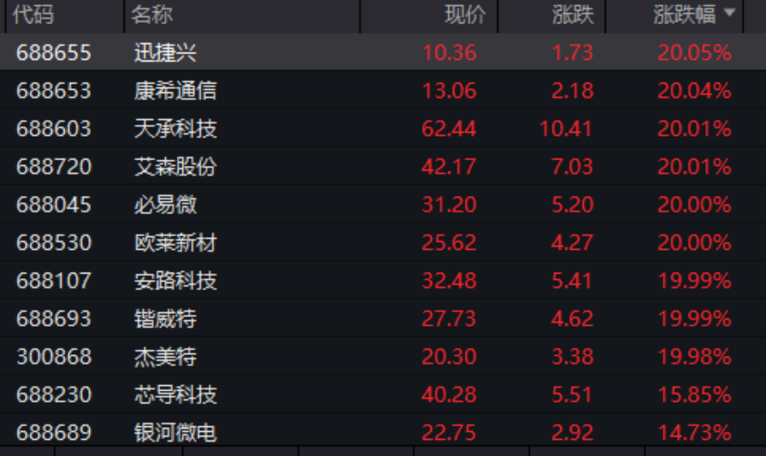 另外,迅捷兴康希通信惠威科技天承科技艾森股份晨丰科技瀛通通讯等多股盘中涨停。