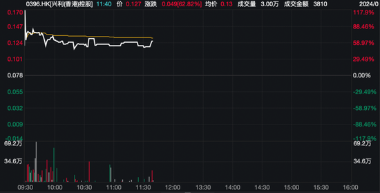 港股市场股价大幅波动的个股中,兴利(香港)控股上午盘中一度暴涨117.95%,后涨幅有所收窄。