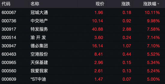 板块内个股方面,冠城大通在开盘不久后就涨停,中交地产临近午间直线拉升涨停。特发服务渝开发德必集团涨超7%,龙头万科A涨超4%。